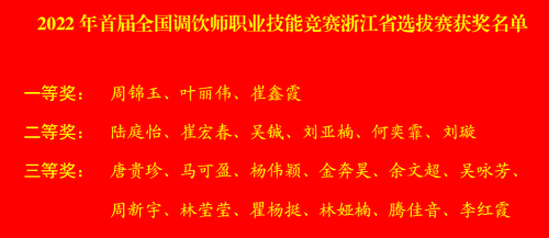 全国首届调饮师暨第三届评茶员职业技能竞赛浙江省选拔赛结果揭晓