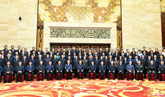 习近平等来到接见现场时,全场响起长时间热烈掌声。习近平向大家挥手致意,不时同代表亲切交流,并同大家合影留念。